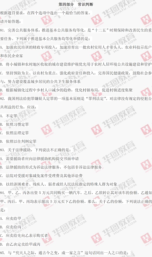 2014河南公务员考试时间是9月27日,华图教育会及时公布2014河南公务员考试考题及考题解析供广大考生参考,并将开启在线估分平台。2014河南公务员考试考题行测(常识判断)如下: