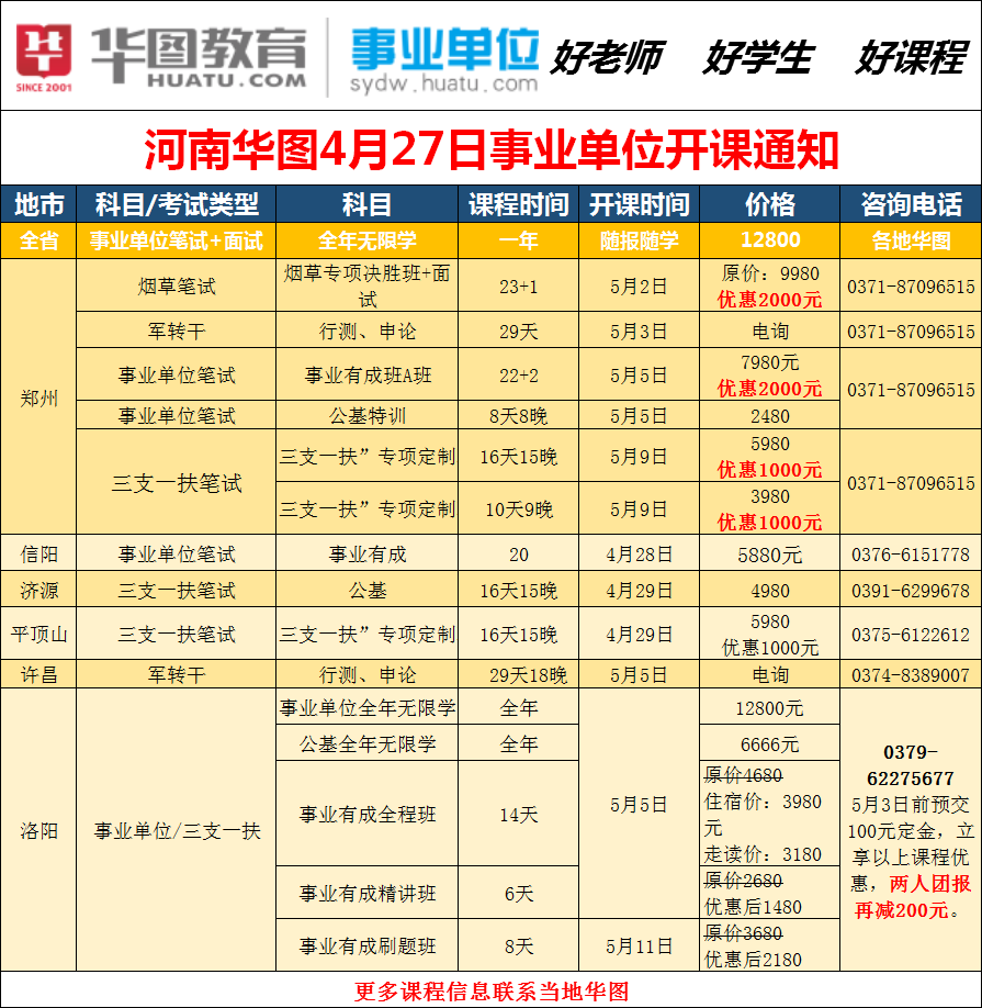 【4月27日开课通知】2018河南事业单位招聘笔试培训开课通知