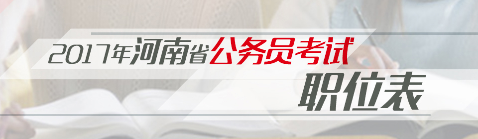 2018河南公务员考试职位表随着2018河南公务员考试公告的公布一块发布,大家可以参考下2017河南公务员考试职位表及历年河南公务员考试职位表。一旦2018河南公务员考试职位表发布小图会同步更新本页面。